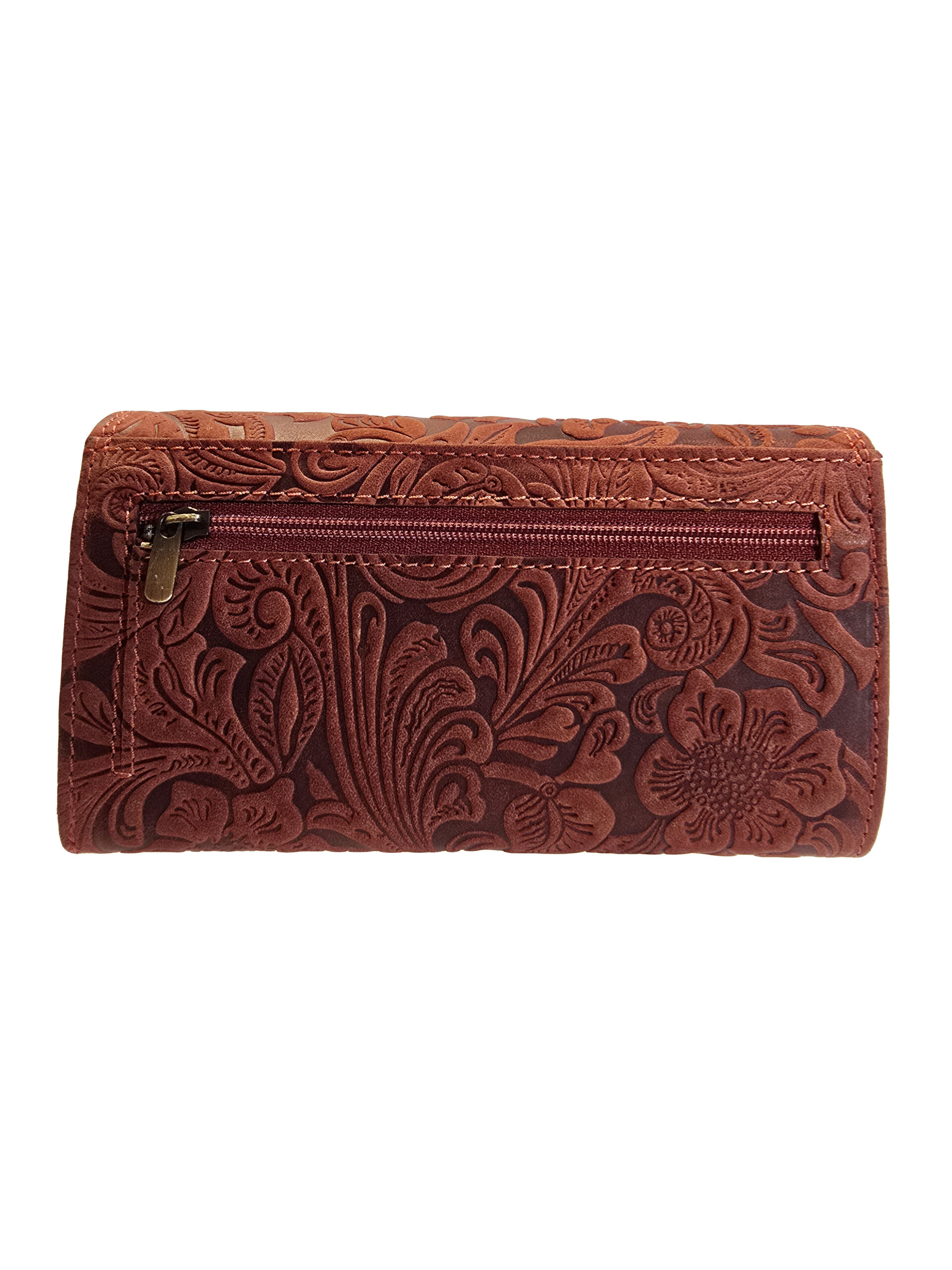 Кристин – дамско портмоне от биволска кожа, оранжево, релефен флорален мотив, с капак и RFID