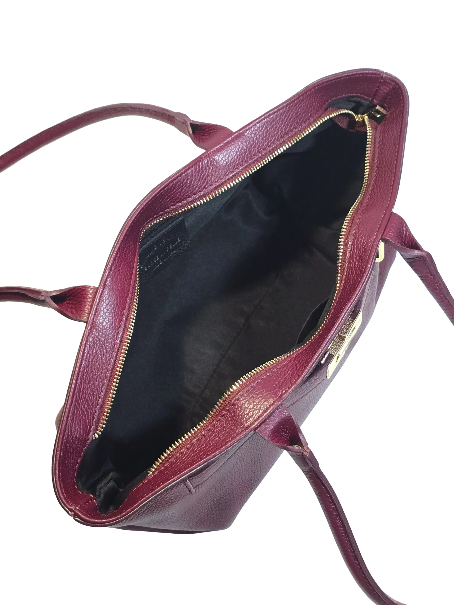Алерия – италианска дамска чанта от естествена кожа с горен цип и двойни презрамки