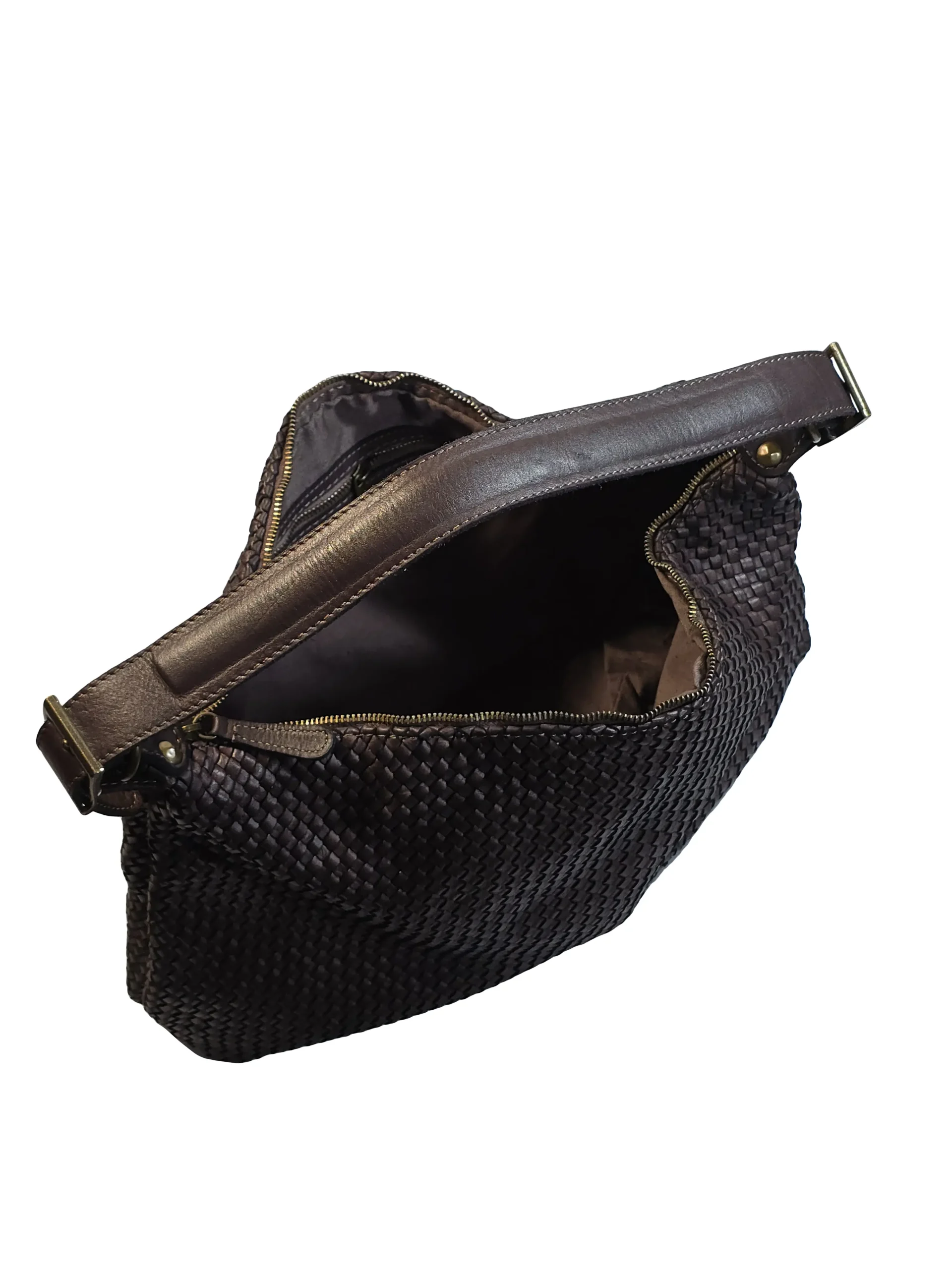 Чанта „Бела“ – италианска дамска чанта от естествена варена кожа с плетена текстура и сваляема дълга презрамка