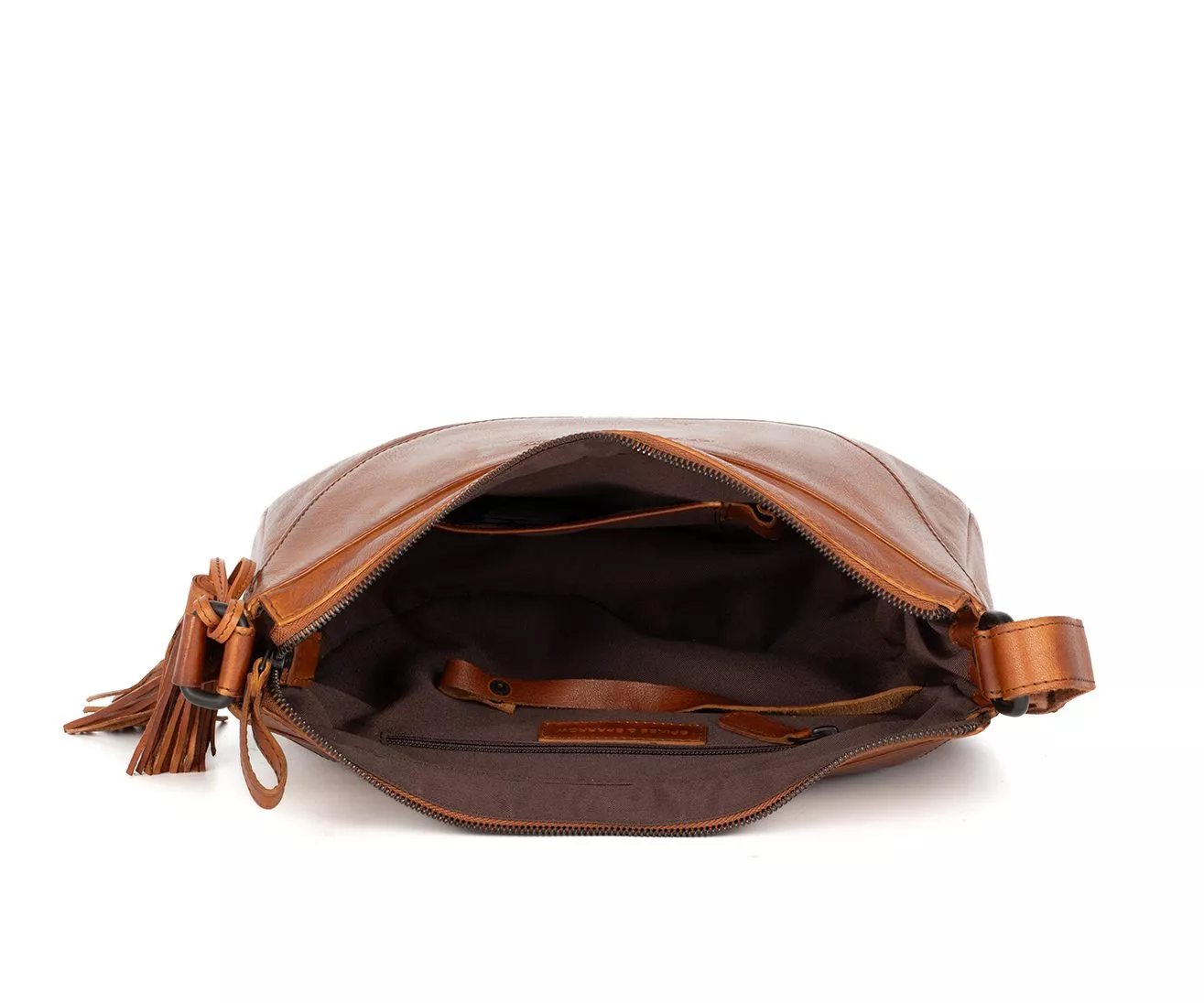 Кожена чанта през рамо с цвят на бренди „Elliana“ – Вечна елегантност с топъл привкус
