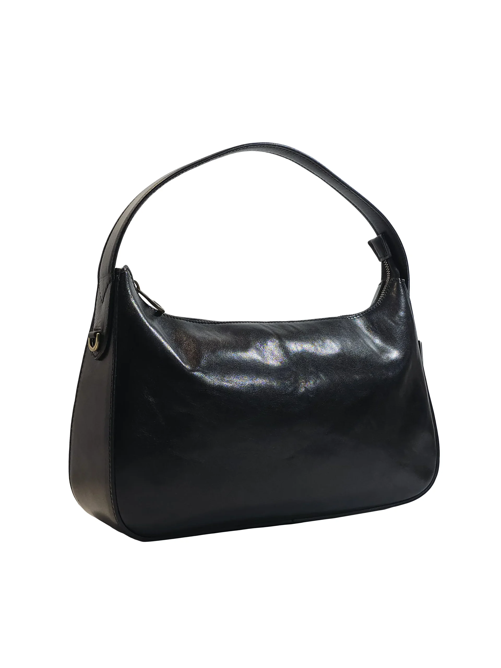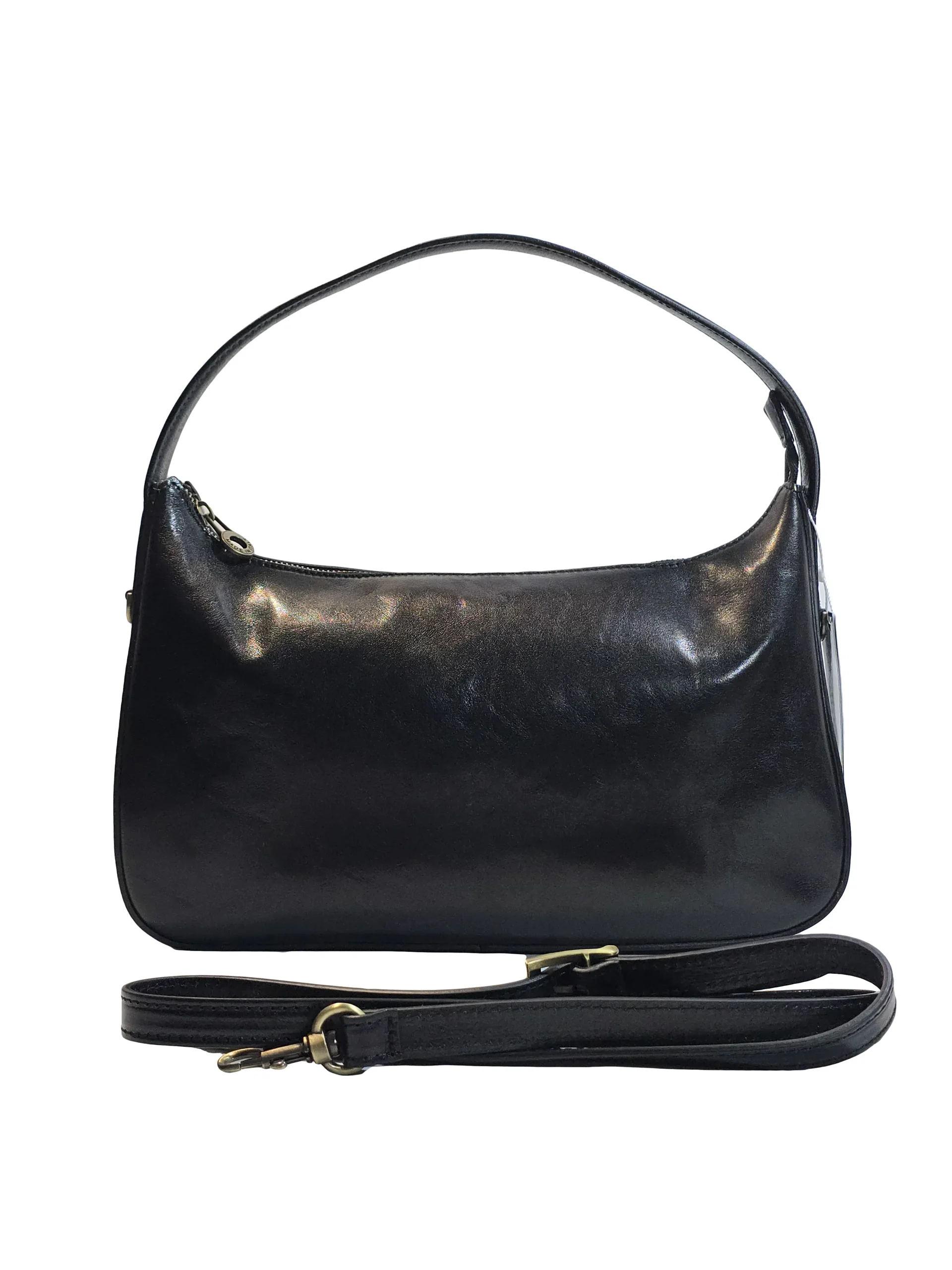 Чанта „Мира“ – италианска дамска чанта от естествена кожа тип baguette с цип и регулируема презрамка