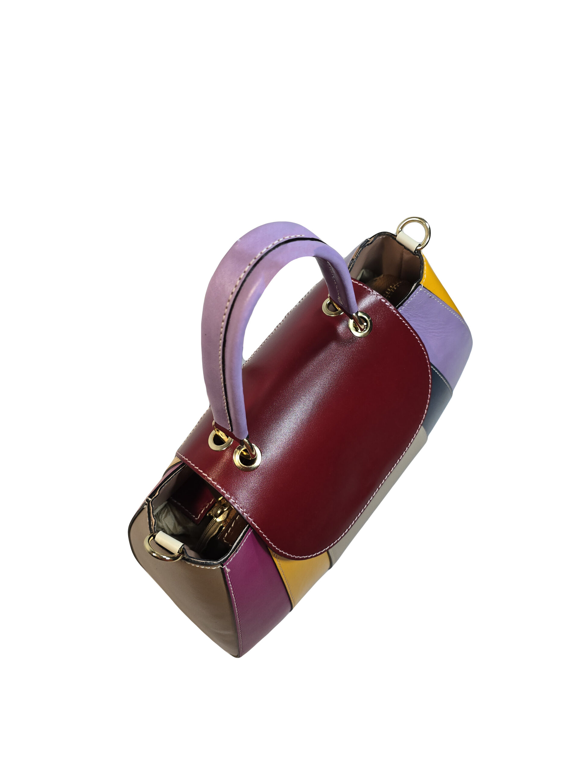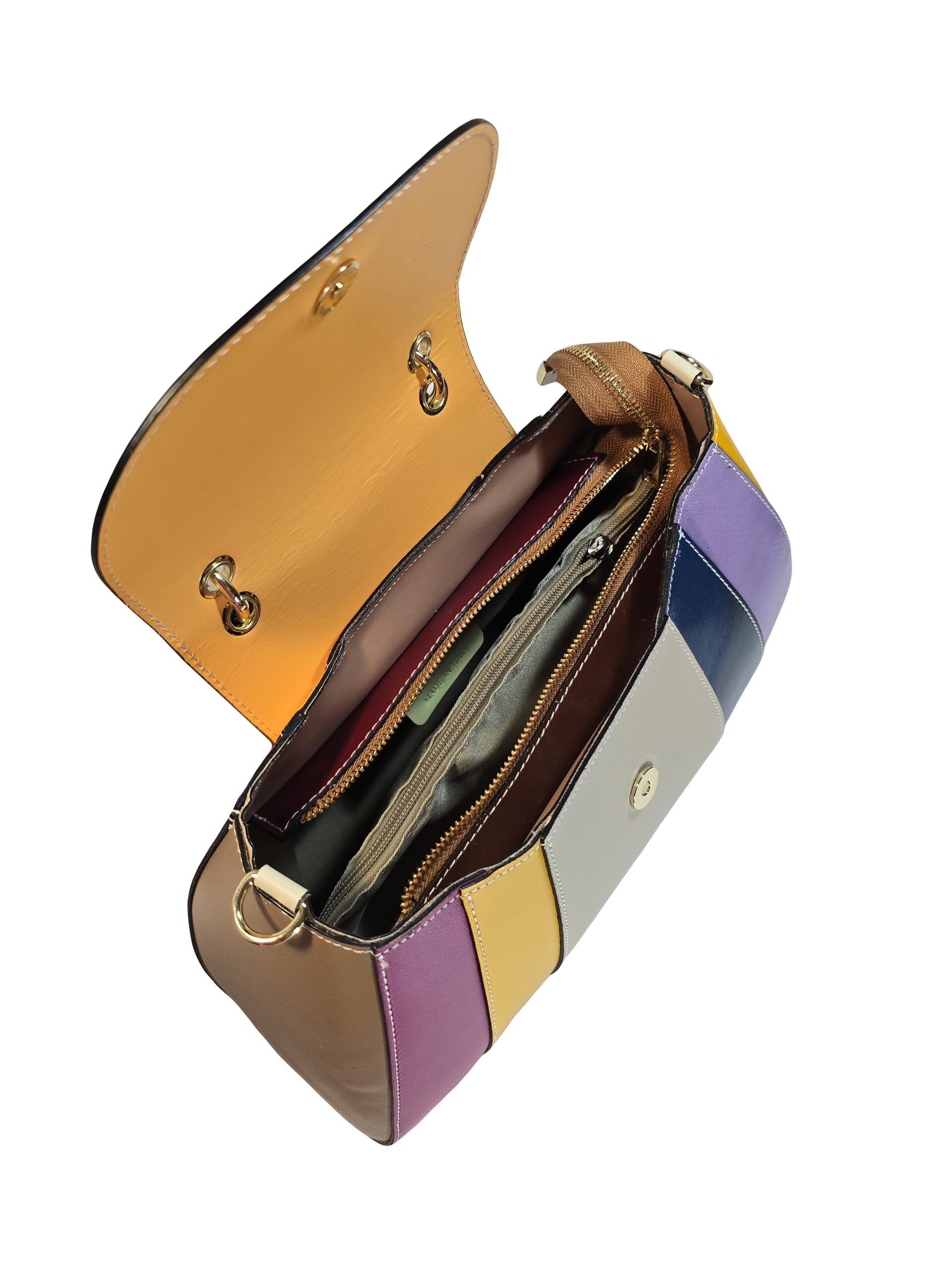 Чанта „Симона“ – италианска дамска чанта от естествена кожа с многоцветен дизайн и капак