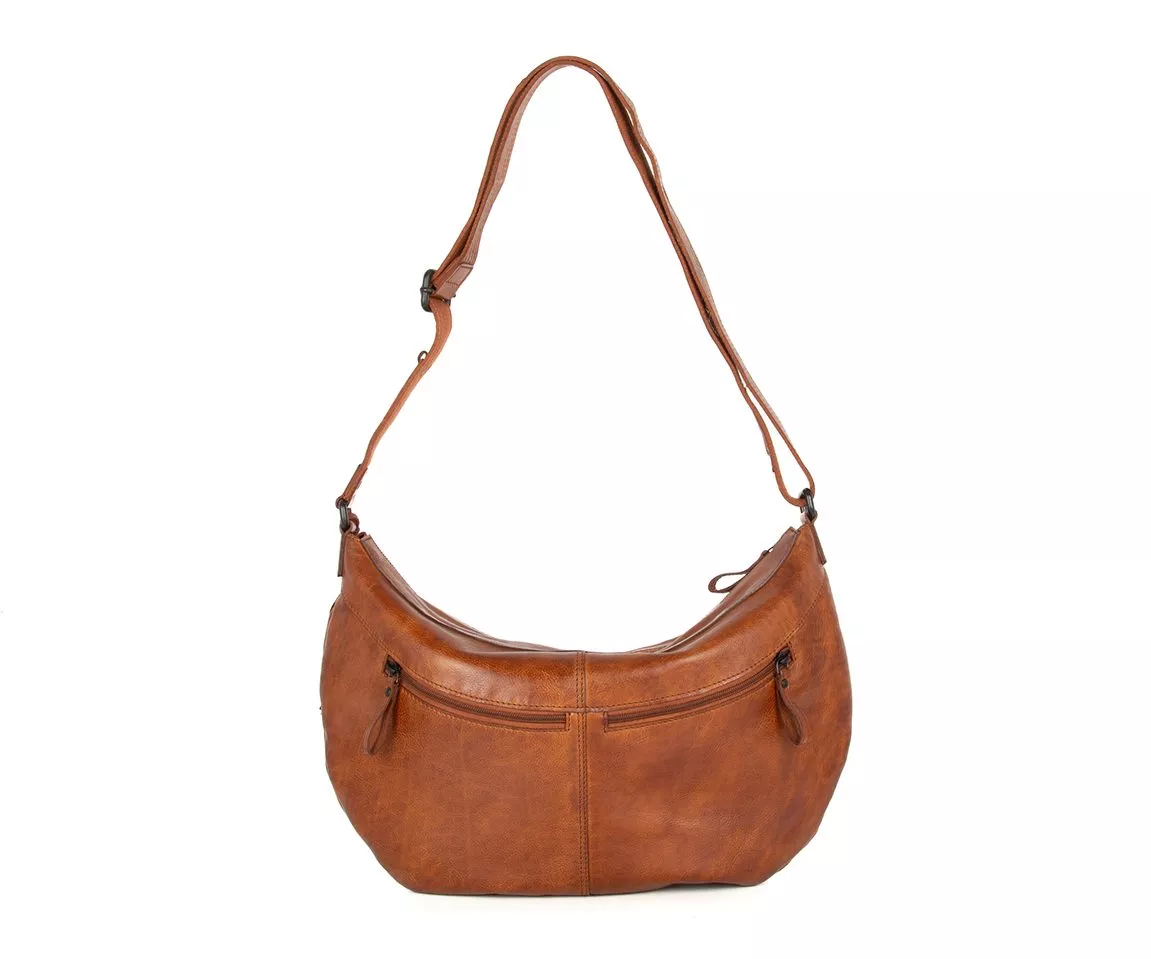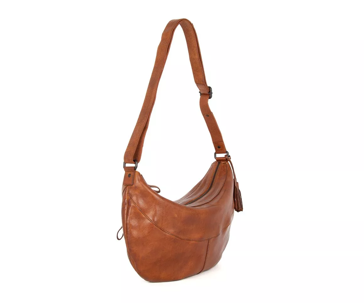 Кросбоди чанта „Сияна“ през рамо от кожа цвят бренди е перфектният пример за ежедневен стил с изтънчен акцент. Топлият коняков оттенък придава на чантата вечен чар, а заоблената, мека форма добавя нотка женственост. Изработена от мека кожа Apache с фин блясък, чантата се приспособява без усилие към тялото ви и се адаптира към ежедневието ви. Независимо дали пътувате до работа, срещате се за обяд или се разхождате из града, Сияна е вашият надежден спътник.