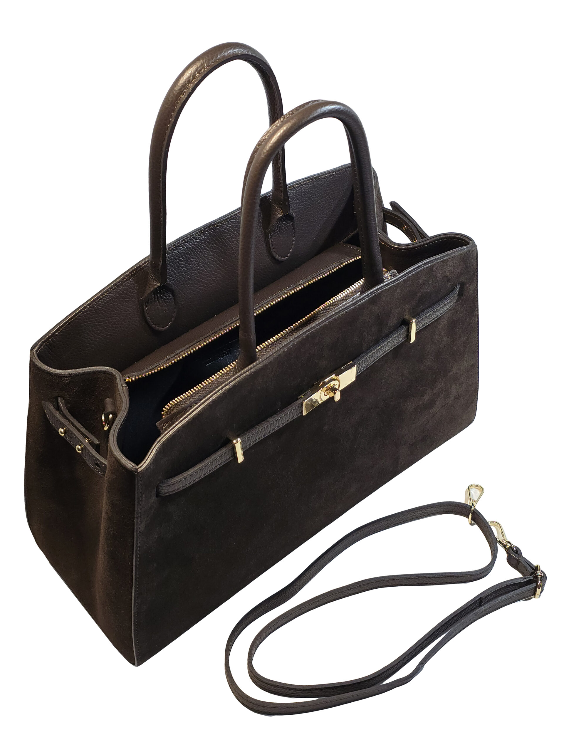 Материали: естествен велур; естествена кожа (дръжки и детайли)