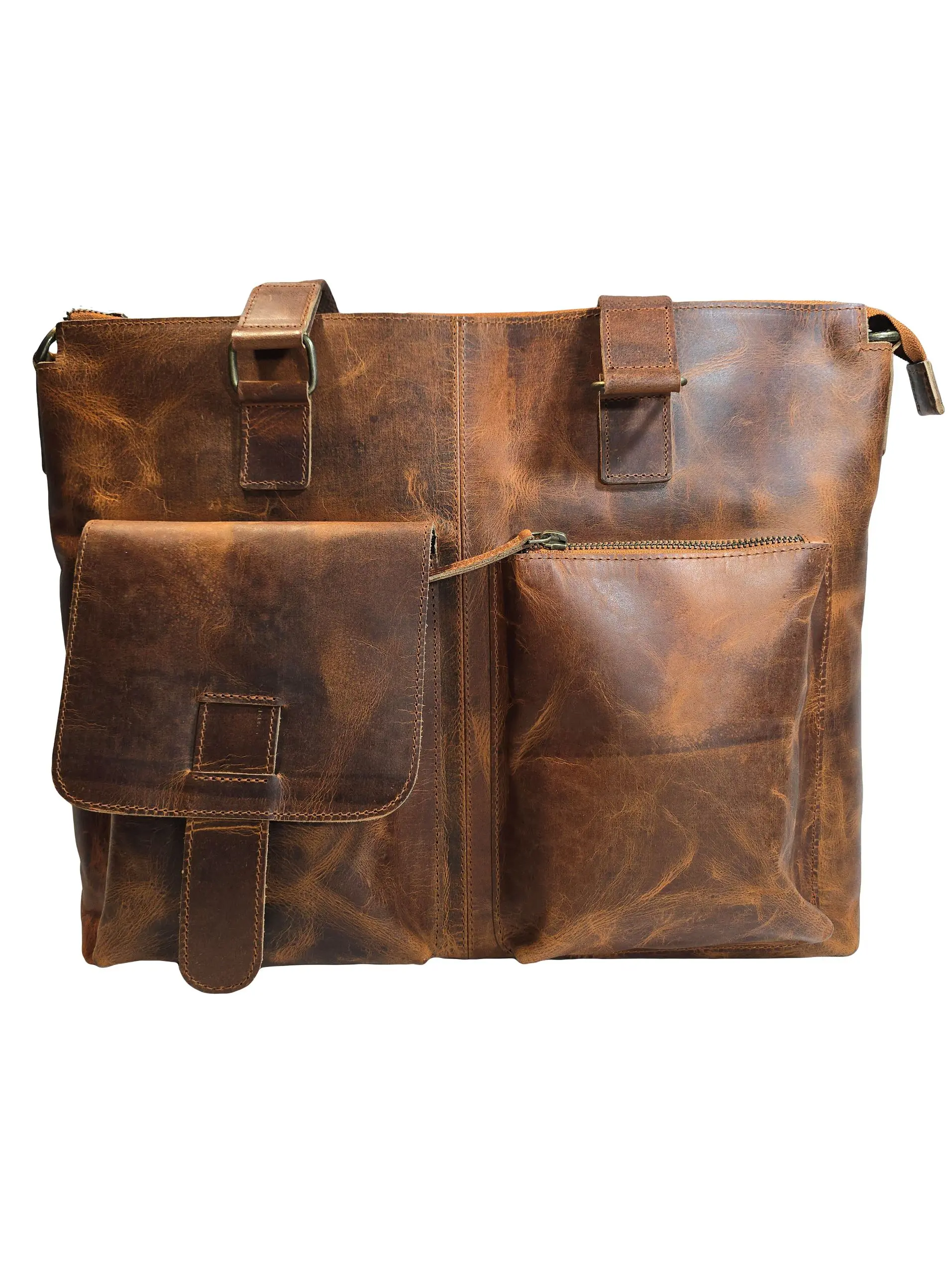 Кожена дамска чанта „Солвея“ от маслено-ваксирана пълнозърнеста телешка кожа